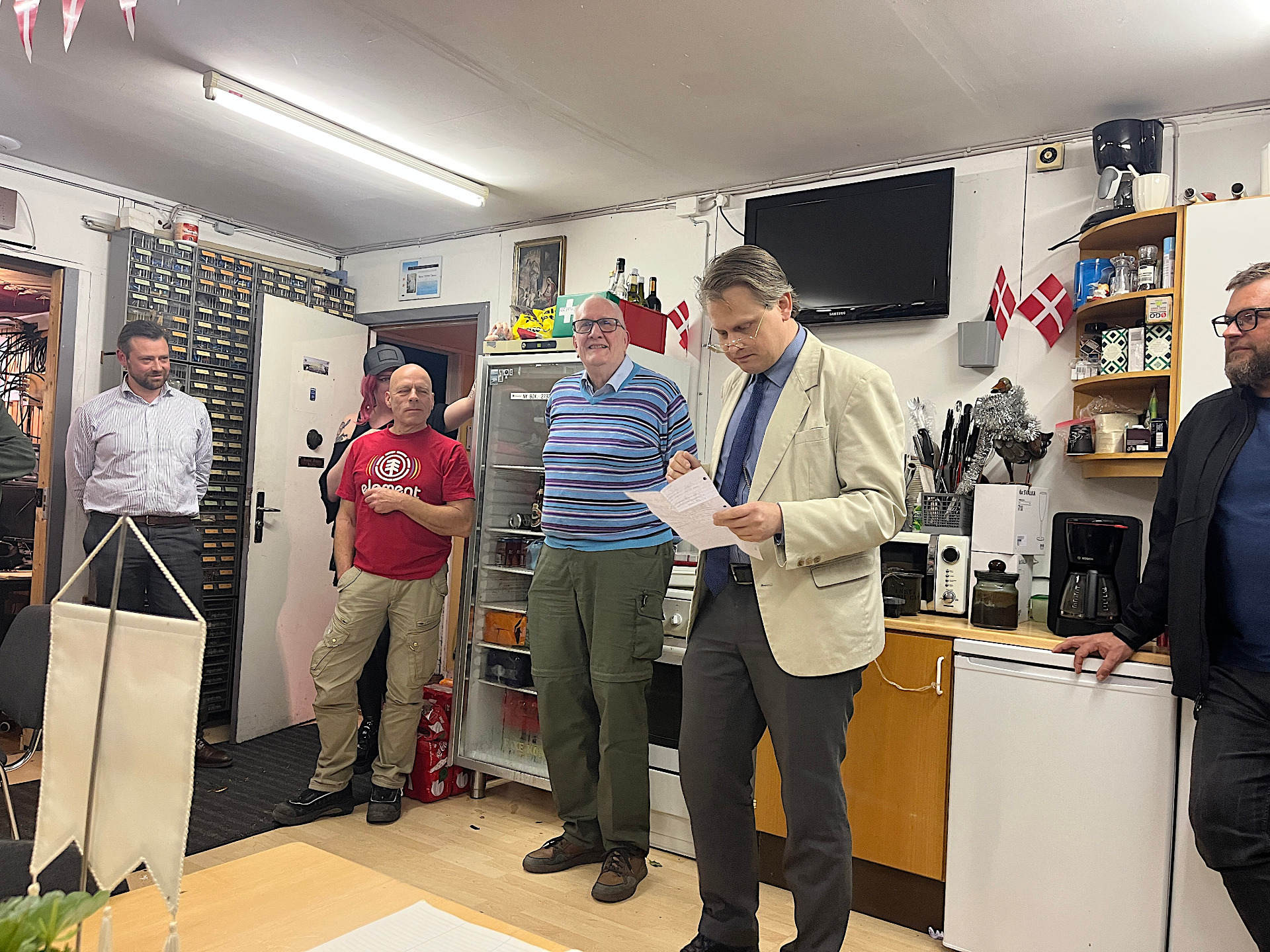 I Tårnby Radioklub OZ7AMG blev Hans (OZ4HZ) fejret med en tale, gaver, og kage (bagt af Inger OZ1LSN) fra/af Morten (OZ1AMAR), Thomas (OZ79T), og Torben (Klein) (OZ13JK). Dette fandt sted Torsdag den 13. November 2025 på én af de mange hyggelige klubaftener på Amager.